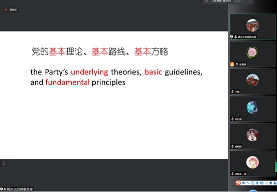 全体二年级翻译硕士、部分一年级翻译硕士、部分二年级学术型硕士和部分翻译硕士导师参加了此次讲座。讲座围绕“学深悟透、精准翻译、有效传播”主题展开。黄老师通过总结自身长期参加党政文献英译实践,从领会精神实质、采用最精准的英语表达和重视译文对外传播效果三个方面介绍了具体的案例。