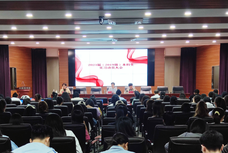 党委副书记郑轶老师、副院长马菊玲老师、英语系主任杨玲老师、2019级辅导员李丹老师、全体实习指导老师以及2019级全体实习生参加了此次大会。