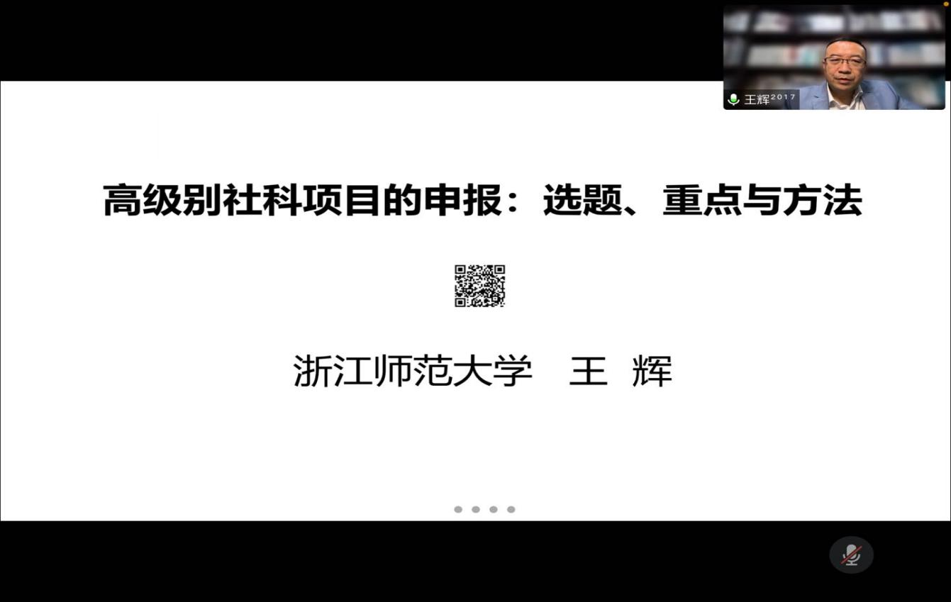 王辉教授的讲座中既有宏观层面的政策解读,也有微观层面的细节分析,既有申报者视角中需要注意的问题,又有评阅者视角中的阅读感受分享,整个讲座点面结合,重点突出,开拓了与会者的学术思路,增强了与会者的申报信心。