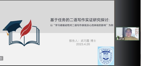 英语系教师武巧霞博士作题为“基于任务的二语写作实证研究”的讲座。讲座由乔幪教授主持,30多名师生参加。