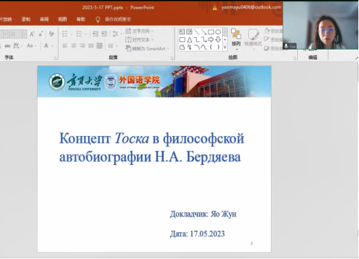 东语系教师姚荣博士做题为“浅析别尔嘉耶夫哲学自传《自我认知》中的观念词тоска”的讲座。讲座由秦江丽博士主持,50多名师生参加。