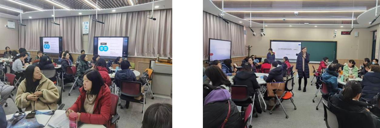 朱海燕老师和闻晖老师详细地向各位老师展示并分享了智慧教室的同屏、白板、小组讨论等使用方法,充分利用信息技术、智能技术为大学英语教学提供了全新的教学方式、学习方式和前所未有的丰富资源。大学英语课堂环境改善有效促进合作学习,助力学生思辨能力提升。