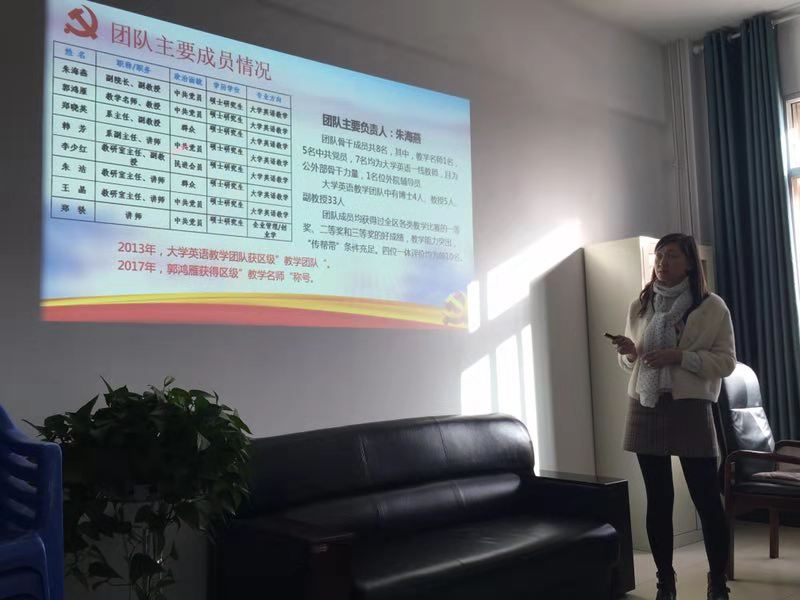 在整个分享过程中,大家积极发言,纷纷表示在今后的教学中,不仅要不断地努力提升个人的教学能力和科研水平,更要在教学过程中注重个人师德师风素养的提升。最后,郭鸿雁教授对“大学英语课程教师团队”建设提出了宝贵的意见和建议,一方面希望各位老师在教学中不断地总结和积累教学经验,打好扎实的业务基础,另一方面要具备良好的职业道德和操守,重视教师自身良好素养的提升和学生人文素养的培养,以教师的个人魅力和良好的师德师风去影响学生、带动同行,形成良好的工作环境和氛围,以团队建设为契机,齐心协力促进本院各项工作的提升。