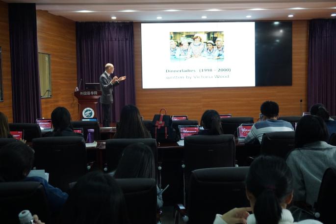 于2017年10月31日下午在403报告厅,特邀Colin Beaven教授为学院全体研究生和老师作了题为“Humour and Literature in Vocational Language Learning”的讲座。