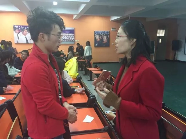 志愿者杨龙江同学也就一些心中疑问咨询百年职校李老师。