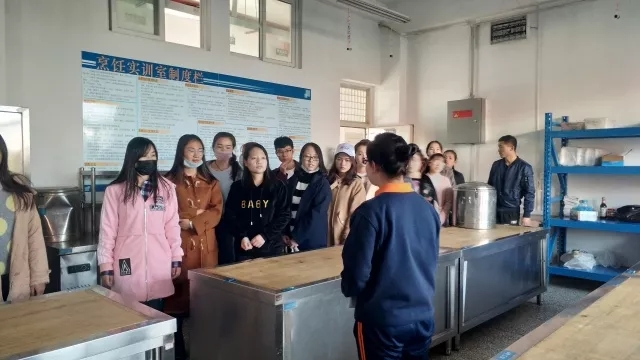随后,志愿者们步行来到百年职校。两位该校学生担任小讲解员,为志愿者们讲解了学校的基本情况,并带领志愿者参观了他们的烹饪实训室、现代服务班、平面制作室和干净整洁的宿舍。