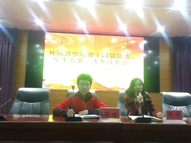 团委书记、学生工作办公室主任郑轶老师,2015级、2016级辅导员徐洋老师发言,第十四届团委、学生会全体成员参加。