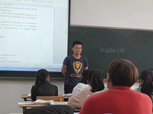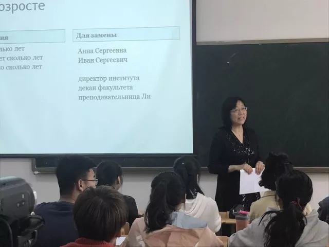 示范课课吸引了俄语专业以及其他专业师生的积极参与。在第一场示范课中,刘老师以学生自编对话和自由问答为导入,巧妙引入教学内容。授课内容层次分明,由浅入深,启发学生主动思考,注重对学生语言输入和语言表达能力的培养。针对复杂的语法知识点,刘老师借助生动系统的课堂练习,鼓励、激发学生活学活用。课堂气氛活跃、师生互动热烈,学生反响非常积极。