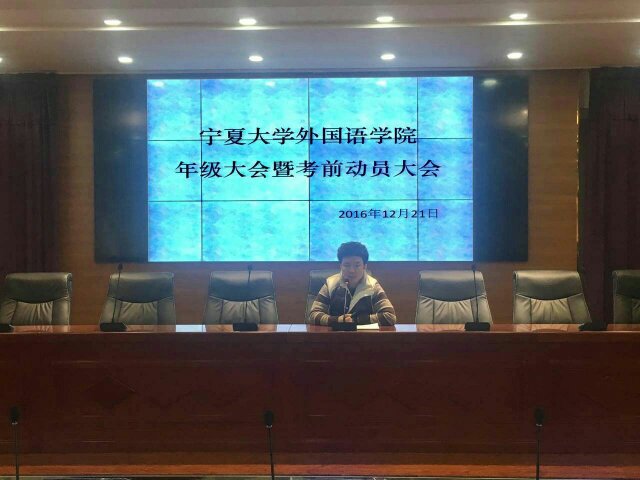 于403报告厅分年级召开了年级大会暨考前动员大会。本次大会由学生工作办公室主任郑轶老师、团委书记王朝老师、16级辅导员徐洋老师分别主持召开。2014级、2015级、2016级全体学生参加。