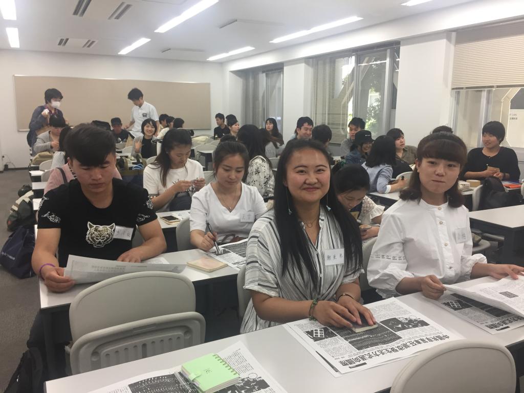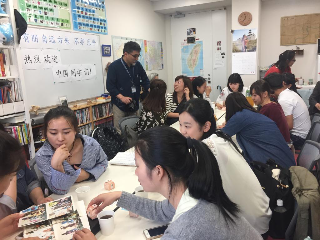 学生用日语,日本学生用中文,大家用所学语言进行交流,别有一番趣味。在大阪大学,学生们还参观了该校的社团活动,在榻榻米上亲自体验了日本的“百人一首”,充分领略到了日式社团的魅力。