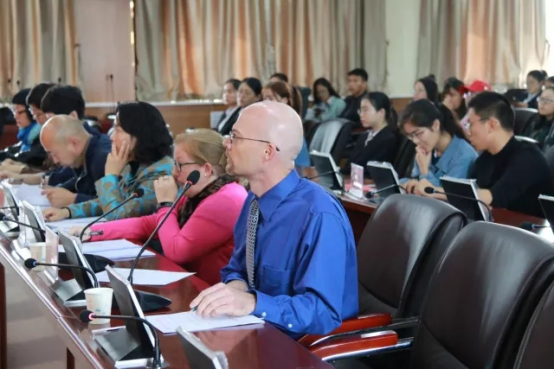 同样精彩的还有3点开场的决赛场。本次大赛决赛场全程于外院403室进行,五位评委分别为瞧秀梅教授,陈亚敏教授,李庆凤教授,胡笑瑛博士,李文军博士。提问外教分别为Dale De Weerd和Sarah Beth Hrmon两位老师。针对“China,a global view”这个演讲题,不同选手有各自的理解与阐释。有的选手以“the secret of China effect”开题,讲述中国在世界范围内作出的杰出贡献,赢得掌声阵阵;有的选手以“China,a coutry knows shi is”开题,从经济、文化等不同角度讲述祖国的发展与进程,获得评委赞许。每个选手各有特色,字字精润,句句动人,情意到浓处,附加动作让表述更加生动,达意更加直接,为评委和观众献上了一场别开生面的视听盛宴。