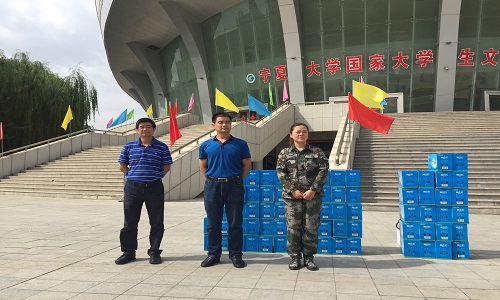 领导也始终关心着本院新生的训练情况。为保证军训期间学生们的身体健康,营养均衡,学院领导为每位新生发放了慰问品。