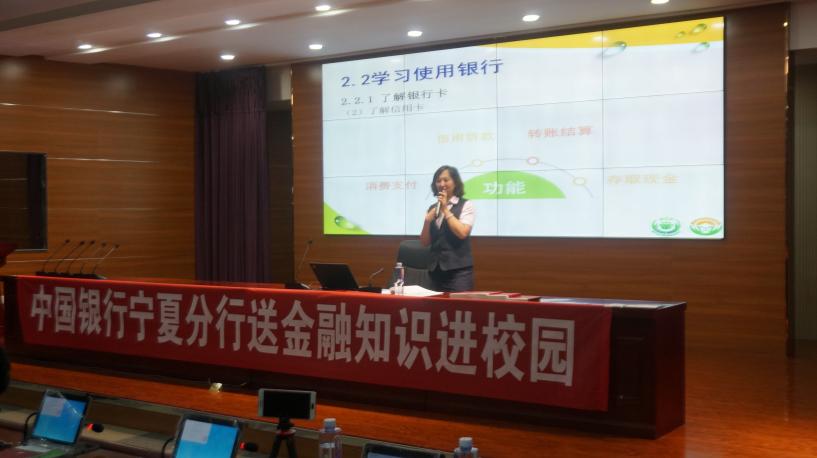 于403报告厅举办了以“金融知识进校园”为主题的新生讲座。主讲人丁玲,是中国银行宁夏分行的团委书记,曾获中国银行2012年全球业务技能大赛优秀奖,2014年中国银行总行级、宁夏区分行级优秀共青团干部,2016年中国银行宁夏区分行优秀共产党员等荣誉。抖音黑料