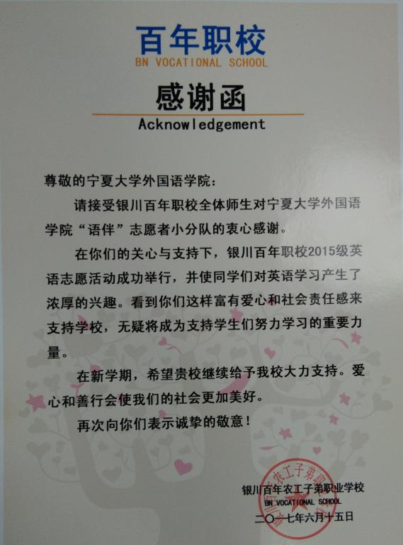 学生的精神风貌和“语伴”志愿服务项目“尽我所学,与你为伴”的志愿精神,在此,对参加百年职校英语帮扶活动的志愿者们说一声,你们辛苦啦!