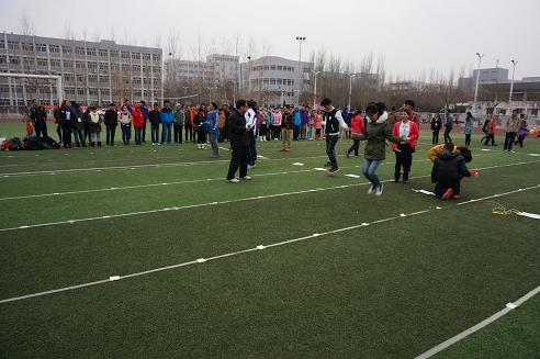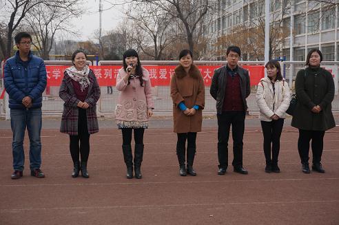学生工作办公室主任余洁宣布比赛开始,各参赛队代表纷纷摩拳擦掌、勇立赛道。本次决赛分为障碍赛、你比我猜、最强记忆、车轮站四个环节。比赛实行积分制,前三环节结束后,得分较高的三支代表队进入第四环节的终极挑战。参赛队员们不惧寒风、快乐奔跑、奋勇争先,赢得现场观众阵阵喝彩。前三环节的比拼,角逐出了阿拉伯学院、国际教育学院、机械工程学院三支强队,进入终极挑战——车轮战。本环节主持人念出单词的英文释义,各参赛队员合作在答题板上写出单词,单词正确即可得分。