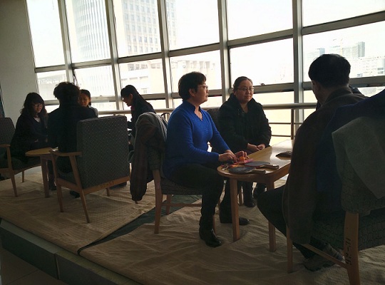 瞧,在“家”的东面,十几位教师已在代玉霞老师的带领下,一呼一吸、拉伸放松地练起了“八段锦”这一中国传统的健身术。