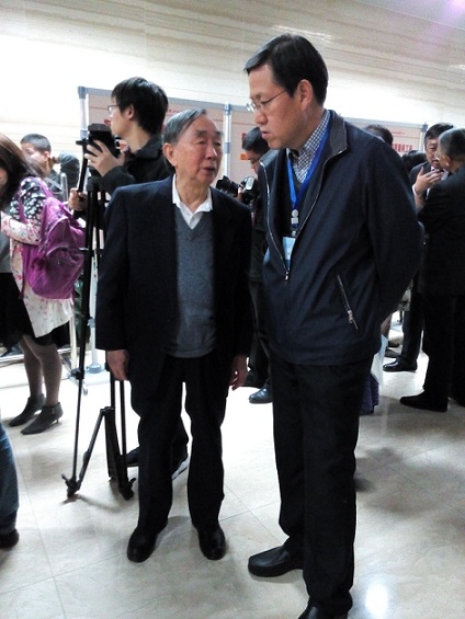 周玉忠院长与原国家语委主任、著名语言学家陈章太先生会场交流