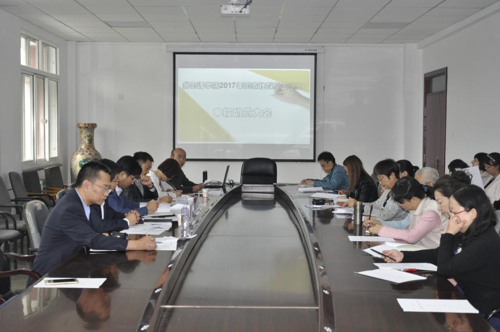 在学院会议室召开了2017年国家社科基金项目申报动员大会。学院副教授以上职称的老师、博士及在读博士、以及热心科研并有意申报国家社科基金项目的青年教师约60多人参加了会议。科技处领导李学斌处长、赵军副处长,以及史晓娟科长一行受邀莅临大会、指导工作。