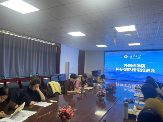 科研团队建设工作推进会。学院全体班子、科研团队负责人、科研团队咨询专家、外国语言文化研究中心负责人等参加推进会。会议由学院分管科研和学科建设工作副院长金忠杰主持。