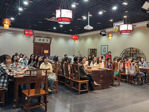 参观结束后,宁夏外事办一级翻译何琪老师做了题为“如何做好外事翻译”的讲座。何老师结合此次实践探讨了如何在翻译实践中做好对外宣传宁夏的工作。首先,何老师强调了在外事翻译工作中应坚持正确的政治立场和坚定的文化自信,深入学习和掌握枸杞、肉牛养殖等自治区特色产业的专业知识后,再着手开展翻译实践。最后,何老师结合相关案例讲解了外宣翻译的要点,并给出了诸多提升翻译能力的宝贵建议。何琪老师特别强调,从事外事翻译工作必须具备一定的政治鉴别力和政治敏锐性,拥有强大心理素质的同时,永葆好奇心和求知欲。