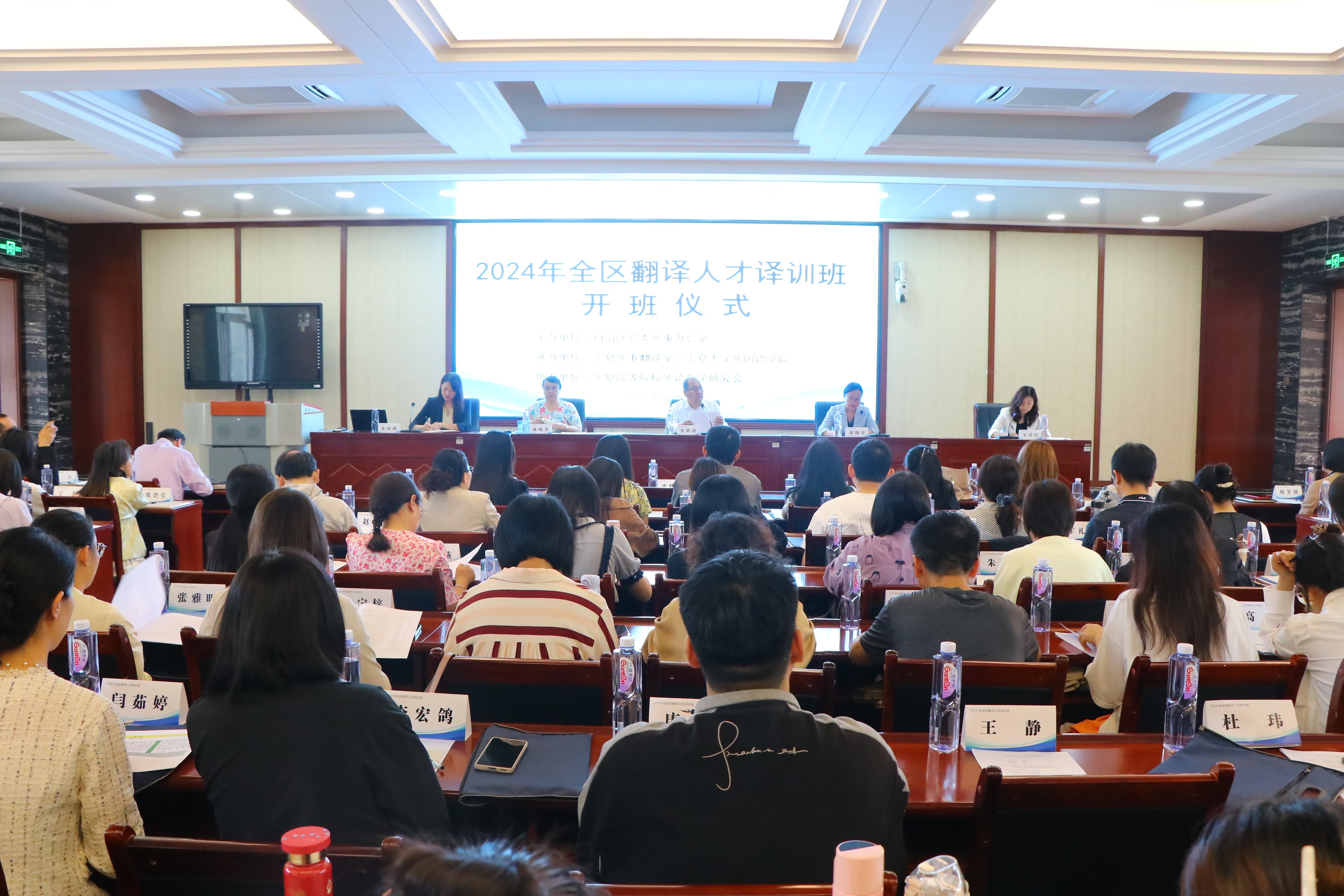怀远校区逸夫楼一楼报告厅正式开班。本次培训班汇聚了来自宁夏回族自治区党委外事工作委员会成员单位、五市涉外系统、国企的英语干部以及高校英语骨干外语教师近100人,共同开启为期三天的系统翻译学习之旅。