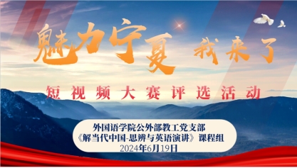 公外部教工党支部联合大学英语《理解当代中国——思辨与演讲》课程组于6月19日下午成功举办“魅力宁夏——我来了”学生英文短视频评选活动。