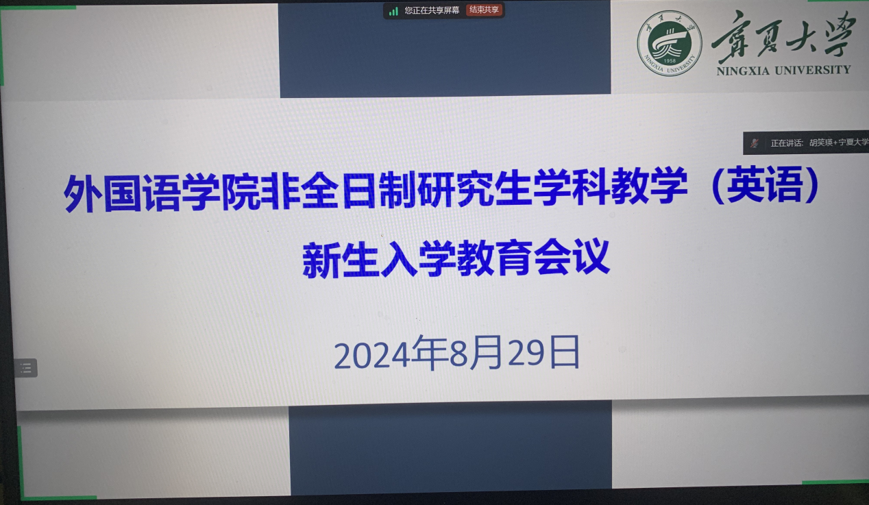 于2024年8月29日晚线上召开2024级学科教学(英语)研究生新生入学教育会议。学院党总支副书记、副院长胡笑瑛、书院党建思政中心主任兼学院研究生辅导员李丹、学部研究生教学秘书王瑞老师、学科教学(英语)全体指导教师以及2024级全体学科教学(英语)研究生参加了会议。会议由学科教学(英语)学位点负责人宋晓龑老师主持。