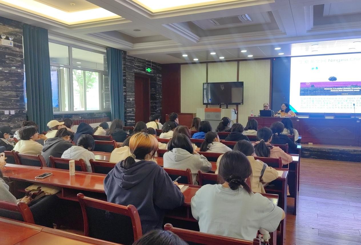 ,以《坚持国家站位,以国际视野讲好宁夏故事》为主题开展专题讲座。学院大一、大二和大三翻译方向全体学生参加了本次活动,英语系副主任常青老师主持讲座。