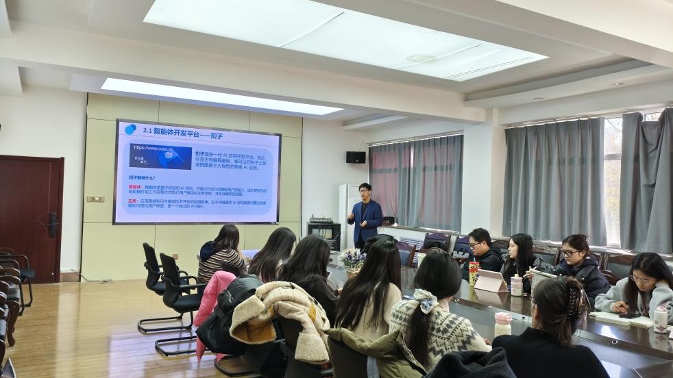 本次讲座系统围绕翻译智能体的核心概念、创建方法与实际应用全面展开。王军礼副教授从基础概念入手,首先为同学们厘清了“什么是智能体”,并介绍了其如何提升译文质量的前沿研究动态。在实践环节,他重点演示了在“扣子”平台上构建专业翻译智能体的完整流程与核心原则,特别强调了知识库构建、记忆模块与工作流设计在智能体效能中的关键作用,引导同学们现场搭建属于自己的智能体,将理论知识转化为实践成果。