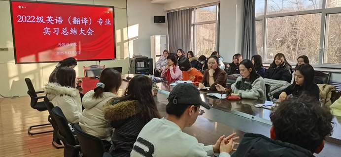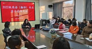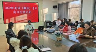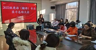 相关领导、实习指导老师、学部代表及2022级翻译专业全体实习生参加了会议。