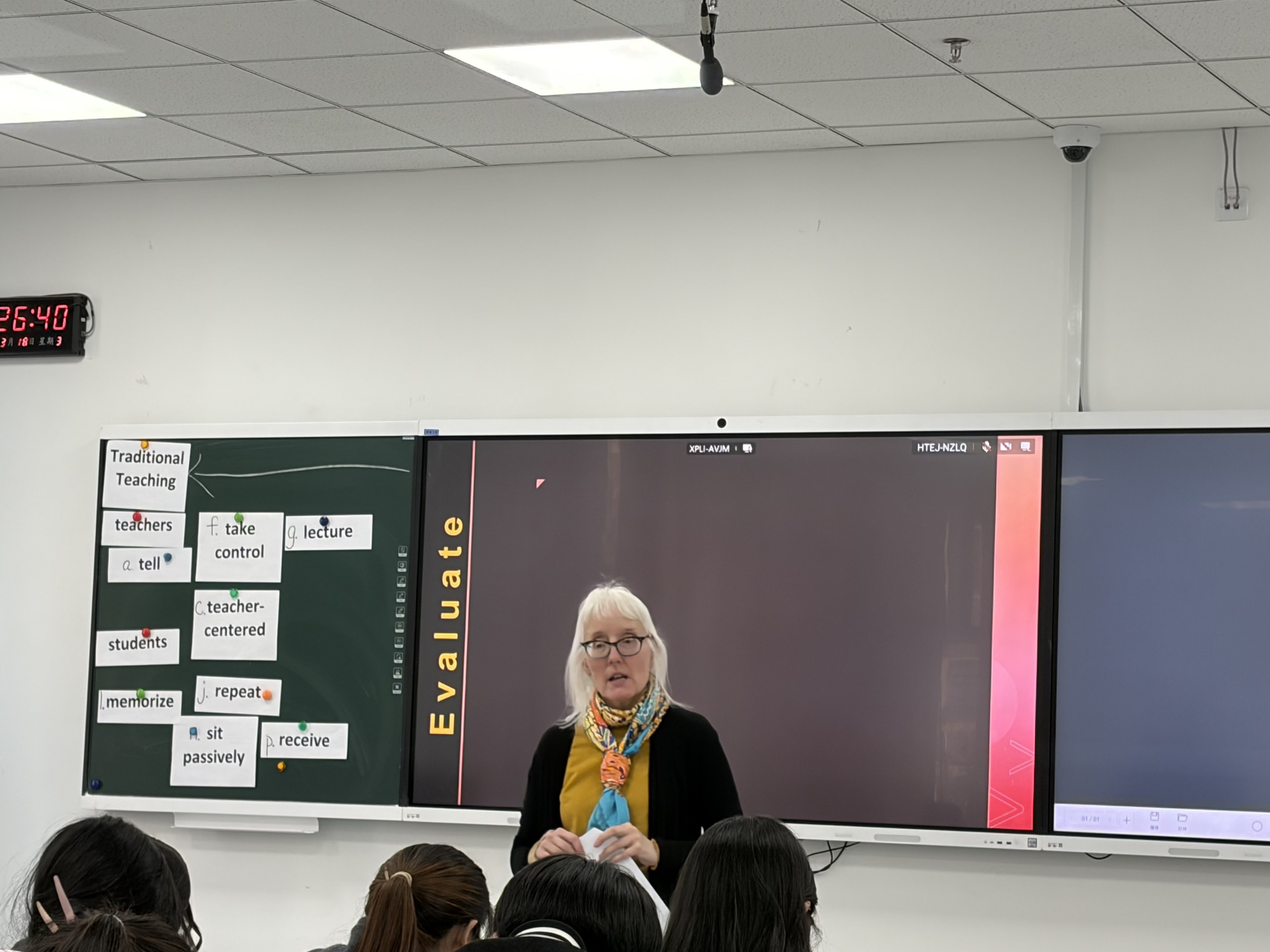 Melissa老师在活动中指出,教学信念深刻影响着教师的课堂决策及学生的学习方式,鼓励学生从被动接受转向探究、合作与批判性思维的培养。她还特别强调反思档案(portfolio)在四年培养过程中的重要作用,建议学生将工作坊讲义、教学观察量表、教学任务设计、反思日志、课堂教学视频及教学理念等材料系统归档,形成可持续的专业成长记录。