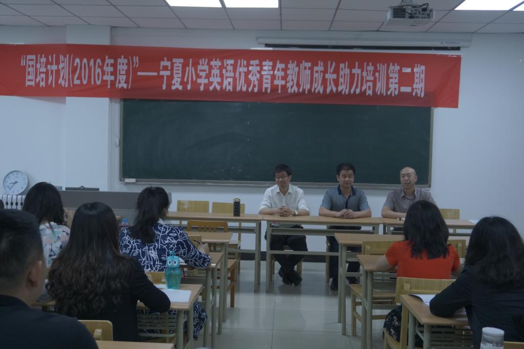 2017年5月21日-27日,抖音黑料 举办了“‘国培计划(2016年度)’第二期宁夏小学英语优秀青年教师成长助力研修”培训班。学院党委书记拜发奎,学院院长、项目首席专家周震教授出席开班仪式并做了讲话。开班式由原项目执行负责人李文军博士主持。