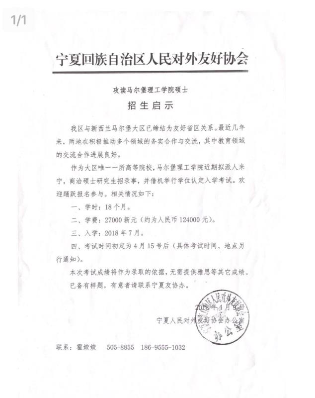 接自治区对外友好协会通知,4月16日下午2点将在学院215室进行马尔堡理工学院硕士招考笔试面试活动。欢迎有意向的同学请仔细阅读招生启示,安排时间,前来报考。